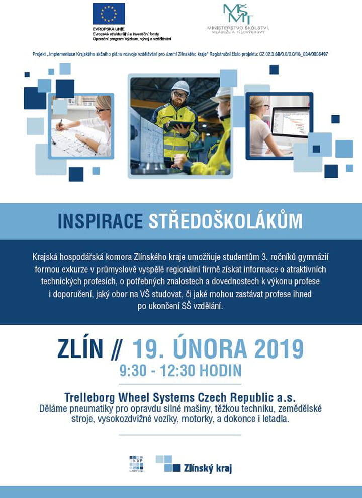 Akce „Inspirace středoškolákům“ je zaměřená na rozvoj žáků a jejich vzdělávání v technických profesích. Jsme rádi, že můžeme v rámci exkurze nabídnout žákům informace, které mohou zvážit při výběru jejich budoucího zaměření. Při exkurzi výrobním závodem se setkali se zajímavými technickými profesemi. Získali informace, jaké znalosti a dovednosti jsou k těmto profesím potřeba. Pomůže jim to v rozhodování, jaký obor studovat na VŠ, jaké mohou zastávat profese ihned po ukončení SŠ vzdělání nebo jaké zvolit případné budoucí povolání.